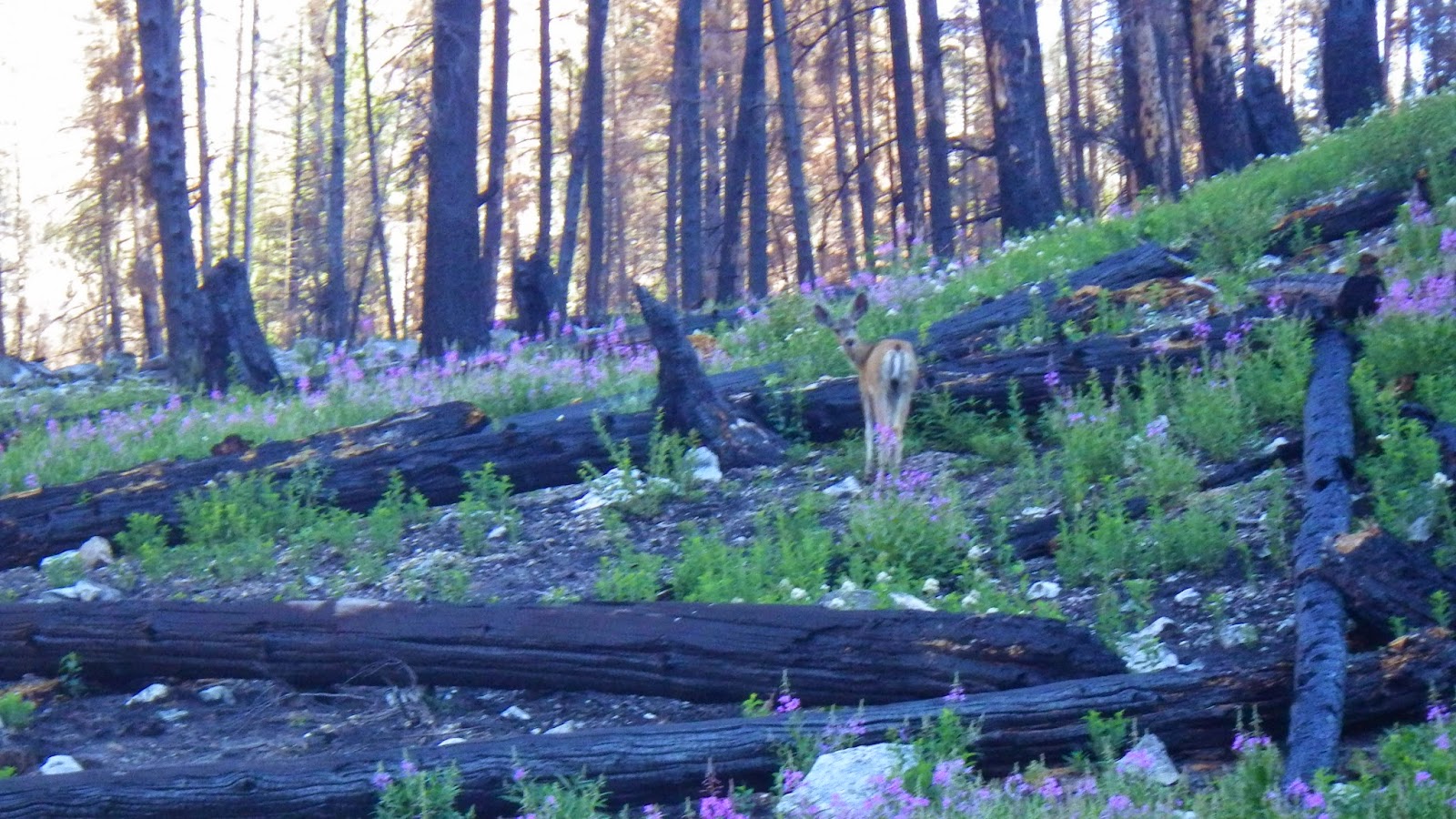 Now we were headed up trail that we had never before walked. We were in the midst of a burned forest and we knew from the map that we were about to hit a zipper of a switchback.