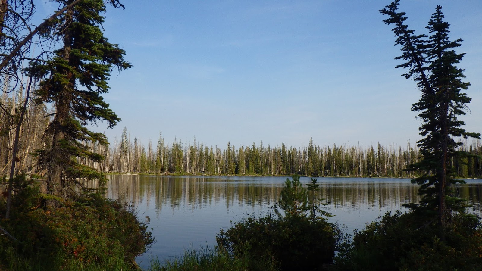 I rushed ahead and waited, moving on as soon as Ambrose was back in sight, keeping his goal posts well in front of him. All told, it took us an hour to get to Sheepeater Lake, passing yet another trail junction that only existed on paper. And here, we planned on finding a campsite. We thought it would be easy to find one, because it was a lake zone that didn’t allow camping too close to the water. Surely, we thought, there would be a clear place to settle down.