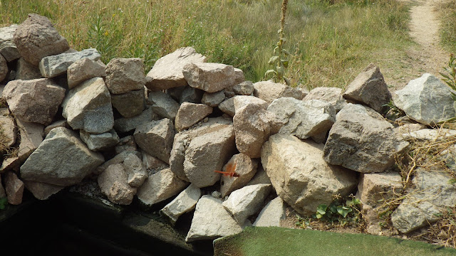 There were huge dragonflies dancing around us, with an orange-ish color that I didn't recall seeing before. And a hawk perched on a tree across the road at one point. A few cars drove by, but most of them didn't notice us. The parked car, sure, they probably saw that, but in the spring we were not very visible.